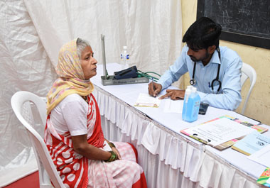 Checking patient in health check up camp.